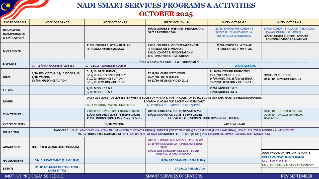 NADI X Kidventure: Webinar Perancangan Kewangan Cohort 7 Tarikh : 25 Oktober 2025 Masa : 10.00 Pagi – 11.00 Pagi Lokasi : NADI Ulu Seperi Peserta : 1 Orang TUJUAN AKTIVITI: Galeri gambar