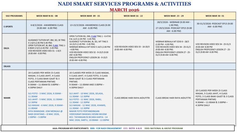 JADUAL AKTIVITI BULAN MAC 2026